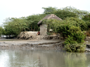 On our return journey in the evening, I noticed houses precariously perched on the edges of sandbars. Our guide pointed to one particular house where a woman sat quietly with her dog with the waters lapping close to her doorstep on three sides. It was only a matter of time before the house, her shelter, would be swallowed by the sea. This is the stark reality for many families we’d just met: the sea is rising every year, and floods are submerging mangroves, fields, and homes. The future for these communities is uncertain.